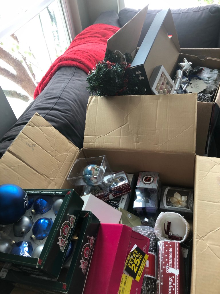 Um halb zwölf hat mir meine Gastmutter dann geschrieben, dass wir den Tannenbaum jetzt schmücken. Das war echt ganz cool! Witzig ist, dass die ganz viele Kugeln von ihren Reisen haben. Ich würde sagen, dass mehr als die Hälfte der Kugeln Souvenirs sind. Auch witzig war, dass die zwei RIESEN Kisten voll mit Christbaum Schmuck hatten.