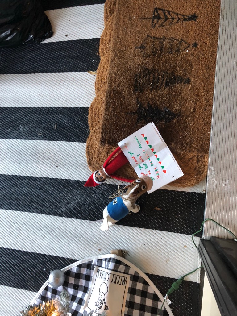 Das ist hier in meiner Familie eine weihnachts Tradition. Jedes Weihnachten von dem 1.-24. Dezember kommt der Haus elf in die Familie und überwacht ob sich jeder artig benimmt. Jeden Morgen musste man dann den elf suchen und er macht immer etwas komisches😅.