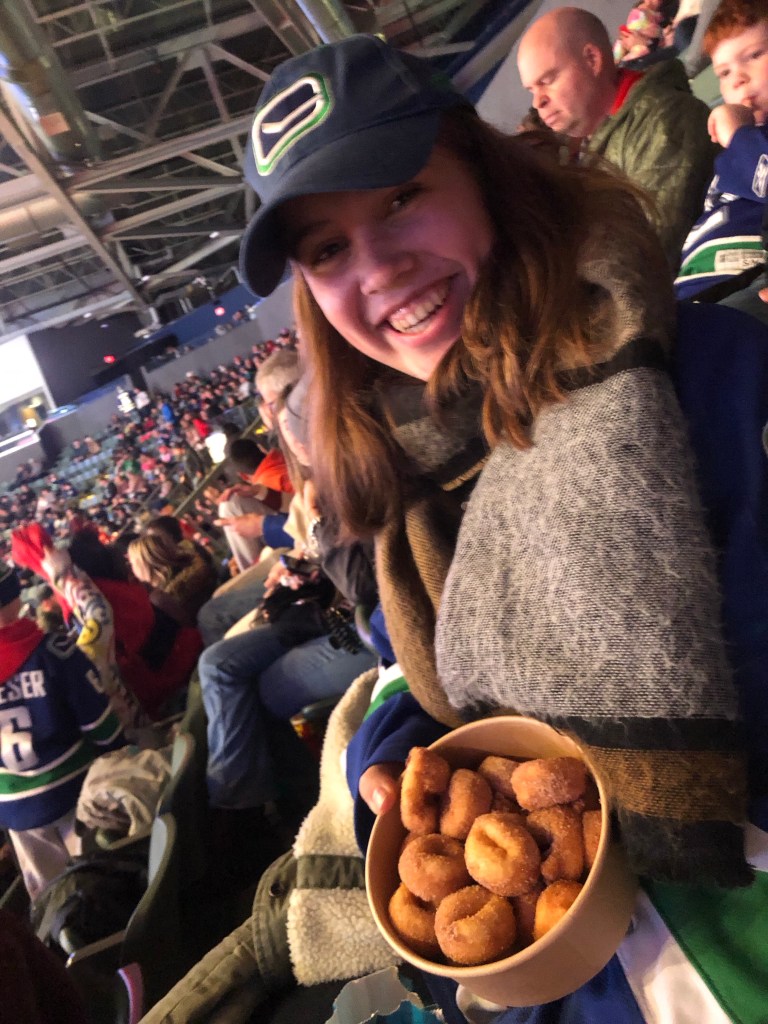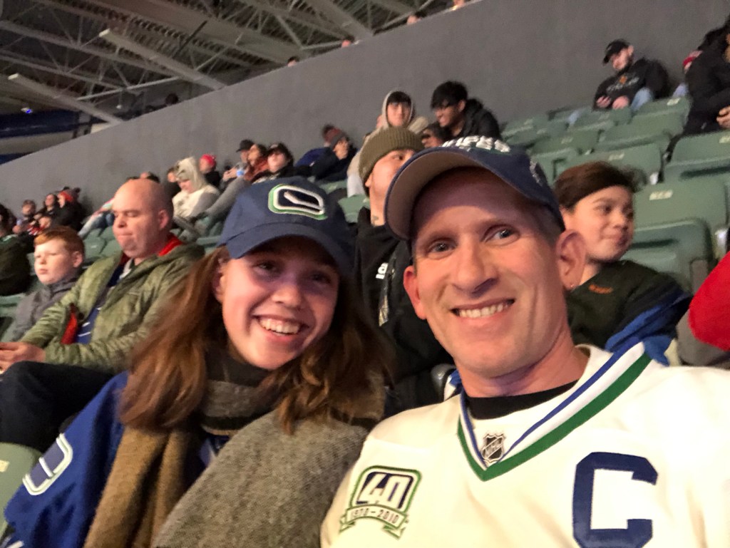 Das Spiel war total cool! Wir haben 7:5 gewonnen🥳. Die Abbotsford Canucks haben gegen die untere Mannschaft von Montreal gespielt😅. Das war echt mega cool!!!!! Mein Gastvater hat mir versucht das ganze Spiel versucht zu erklären und in den Pausen haben wir uns dann immer was zu essen geholt.