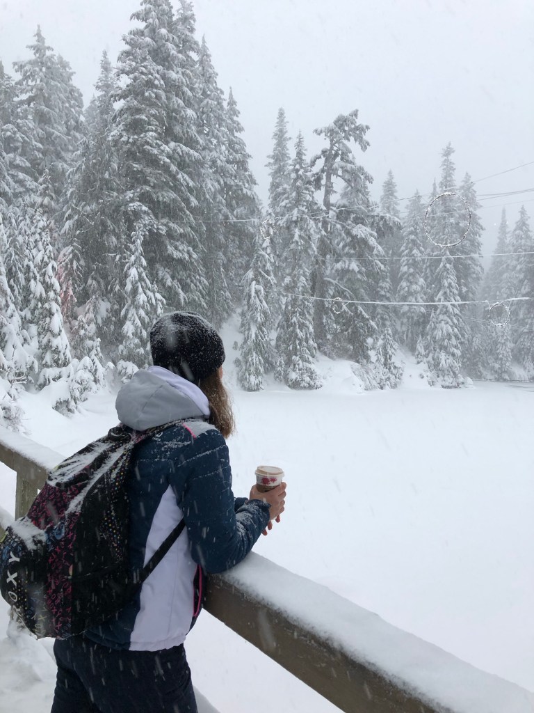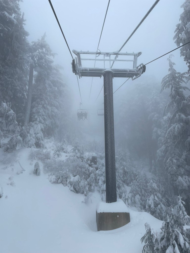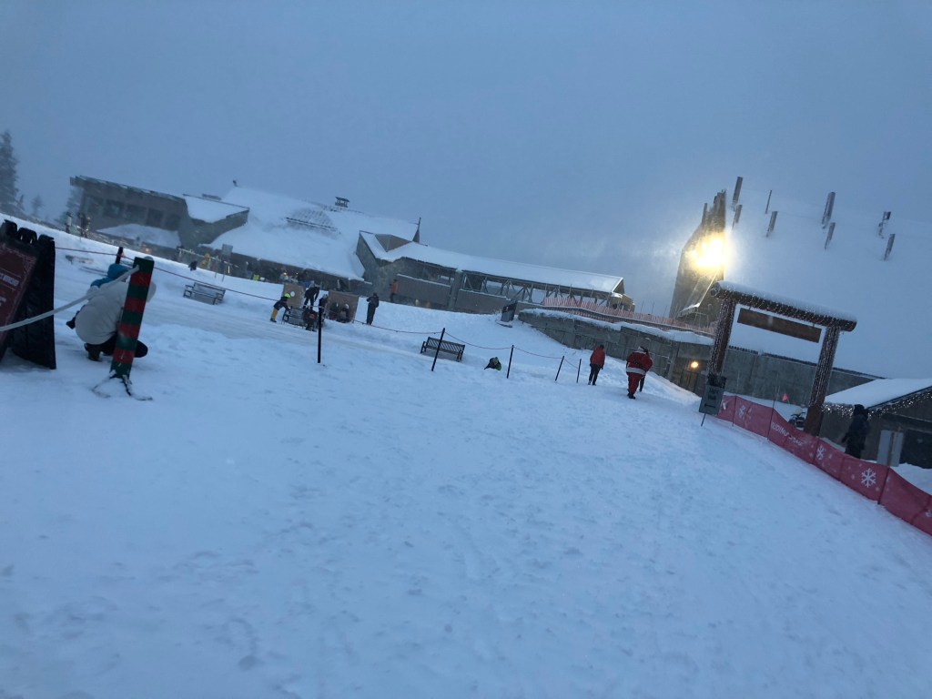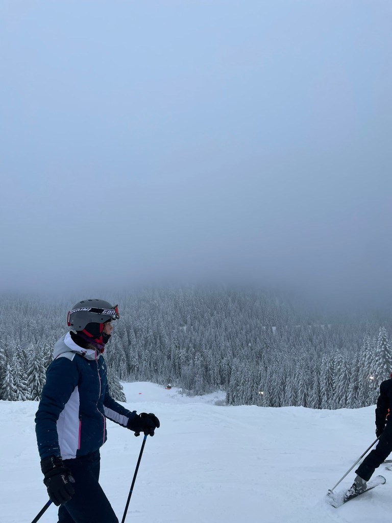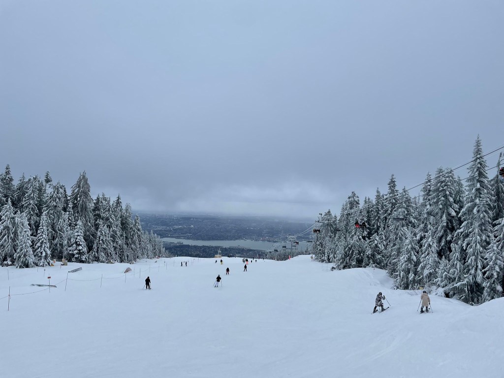 Gegen Ende unserer Stunde sind wir dann wieder zurück zu der einen blauen Piste gefahren und sind diese noch einmal gefahren. Was echt cool war, war dass sich der Nebel gelichtet hatte und man so nen mega schönen Ausblick auf Vancouver downtown hatte.
