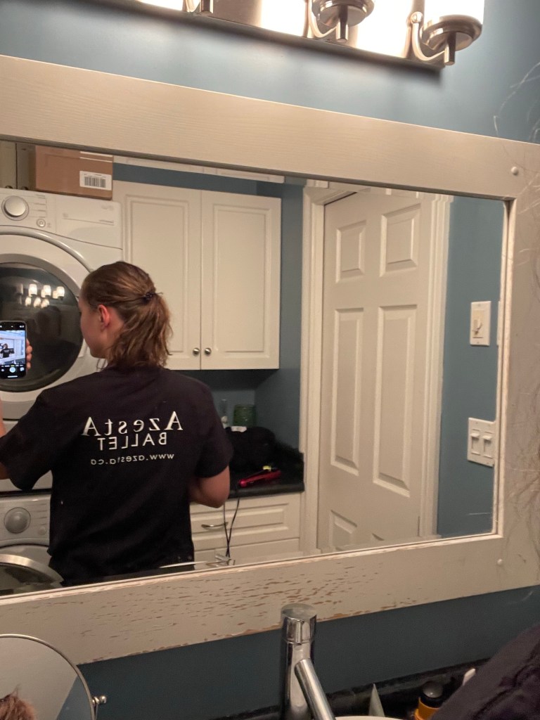 Als ich dann gerade in den Raum gehen wollte hat meine Trainerin mir ein Tshirt in die Hand gedrückt (von Azesta Ballet) und hat gesagt ich soll nach oben in den Raum gehen. Dort haben wir dann Fotos gemacht, denn anscheinend war ich die Schülerin des Monats hahahaha. Fragt mich nicjz wie icu das hinbekommen habe, denn ich habe KEINEN Plan haha.