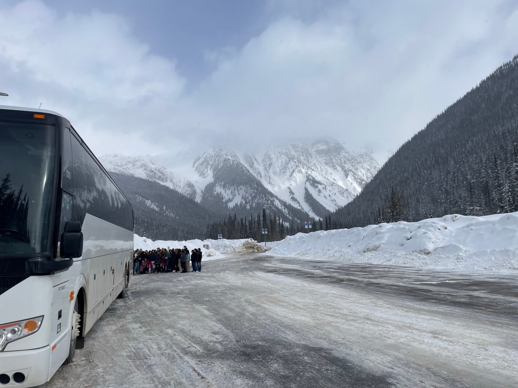 Heute morgen hieß es wieder mal😅 früh aufstehen. Um 7 Uhr gab es Frühstück und das war ehrlichgesagt nicjz so der Börner. Man hat Sachen gefunden, aber das Hotel war gar nicht für hungrige Teenager ausgelegt. es hat einfach immer an Essen gefehlt und die Leute waren auch echt nicht nett. Naja…wir haben dann doch irgendwas Essbares gefunden und dann ging es um 8 Uhr auch schon los. Heute würden wir in die Rockies fahren!