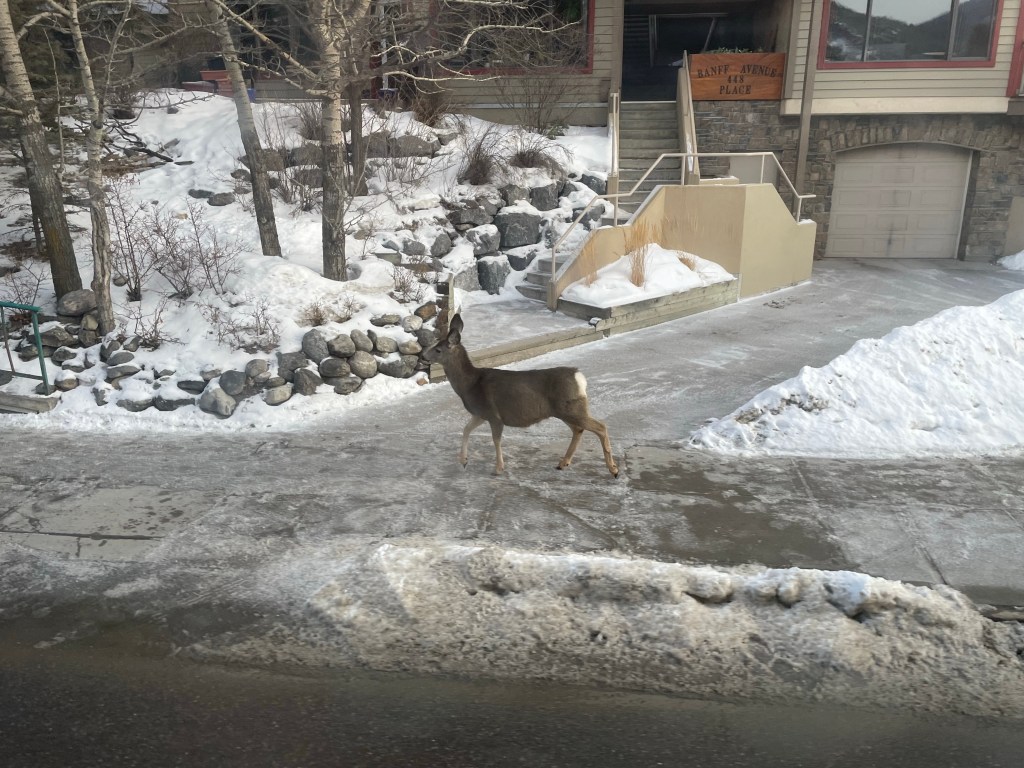 Danach sind wir dann nach Banff gefahren – ein kleines sehr bekanntes Dorf, das sich im Banff national Park befindet. Übrigens auf dem Weg durch bc und jetzt auch alberta sind wir schon durch ganz verschiedene National Parks gefahren. Darunter revelstoke, Yoho, Banff, Glacier und Lake Louise. Als wir dann in Banff angekommen sind haben wir dann auch unser erstes wirkliches Wild Tier Gesehene, dass auf dem Bürgersteig gewartet hat, damit es die Straße überqueren kann😅.