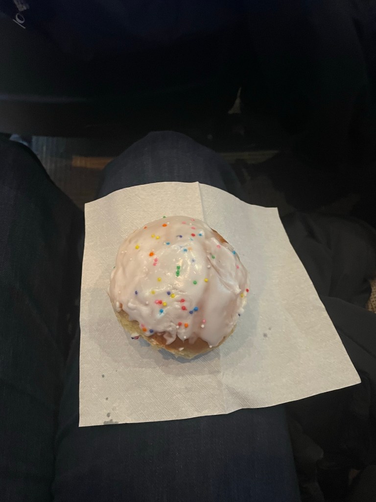 In der Kirche habe ich dann auch noch Paska Bread bekommen. Das ist so ein süßliches hefebrötchen mit zuckerglasur. Haben nachher rausgefunden, dass es eigentlich eine Tradition aus der Ukraine ist, aber auch das christentum symbolisiert🤷♀️😅.
